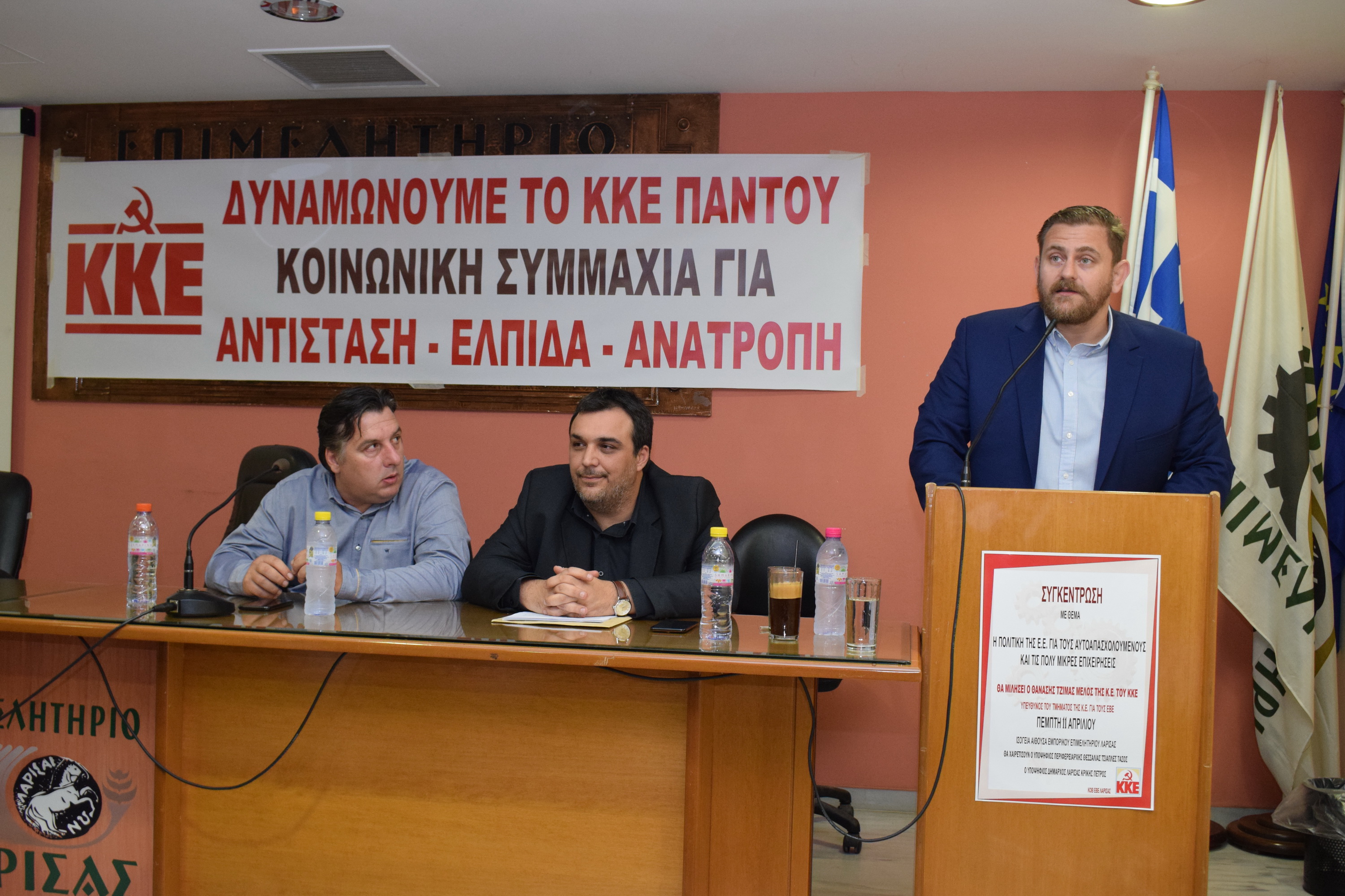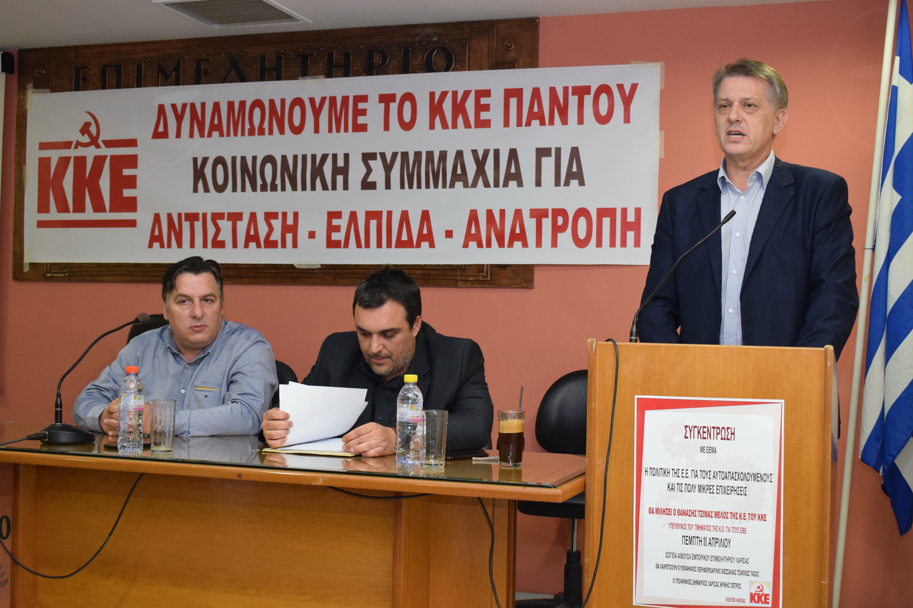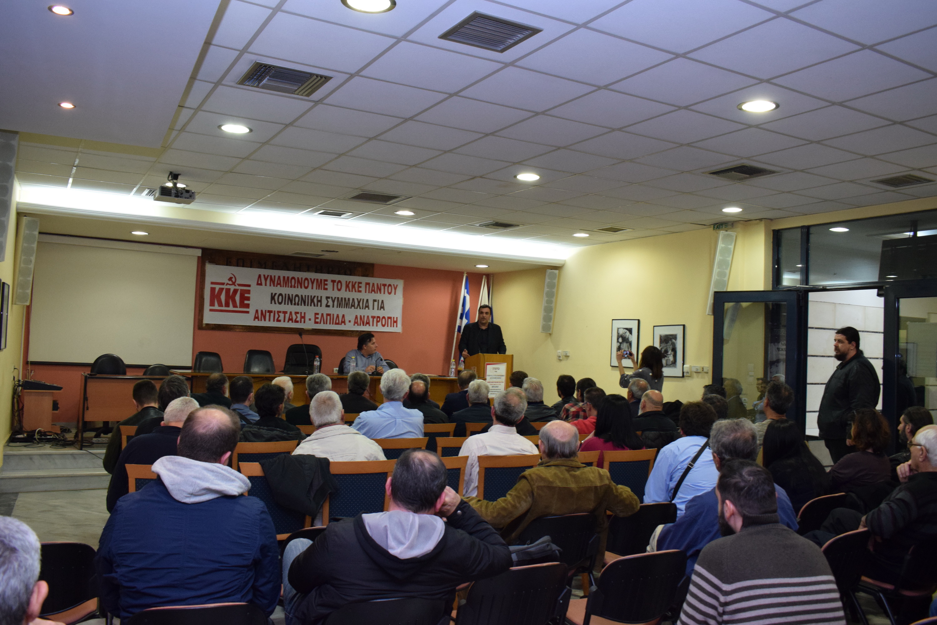 Με επιτυχία πραγματοποιήθηκε η εκδήλωση της ΚΟΒ ΕΒΕ Λάρισας του ΚΚΕ με θέμα «Η πολιτική της ΕΕ για τους αυτοαπασχολούμενους και τις πολύ μικρές επιχειρήσεις», το απόγευμα της Πέμπτης 11 Απρίλη, με ομιλητή τον Θανάση Τζίμα, υποψήφιο ευρωβουλευτή, μέλος της ΚΕ και υπεύθυνο του Τμήματος της ΚΕ για τους ΕΒΕ.