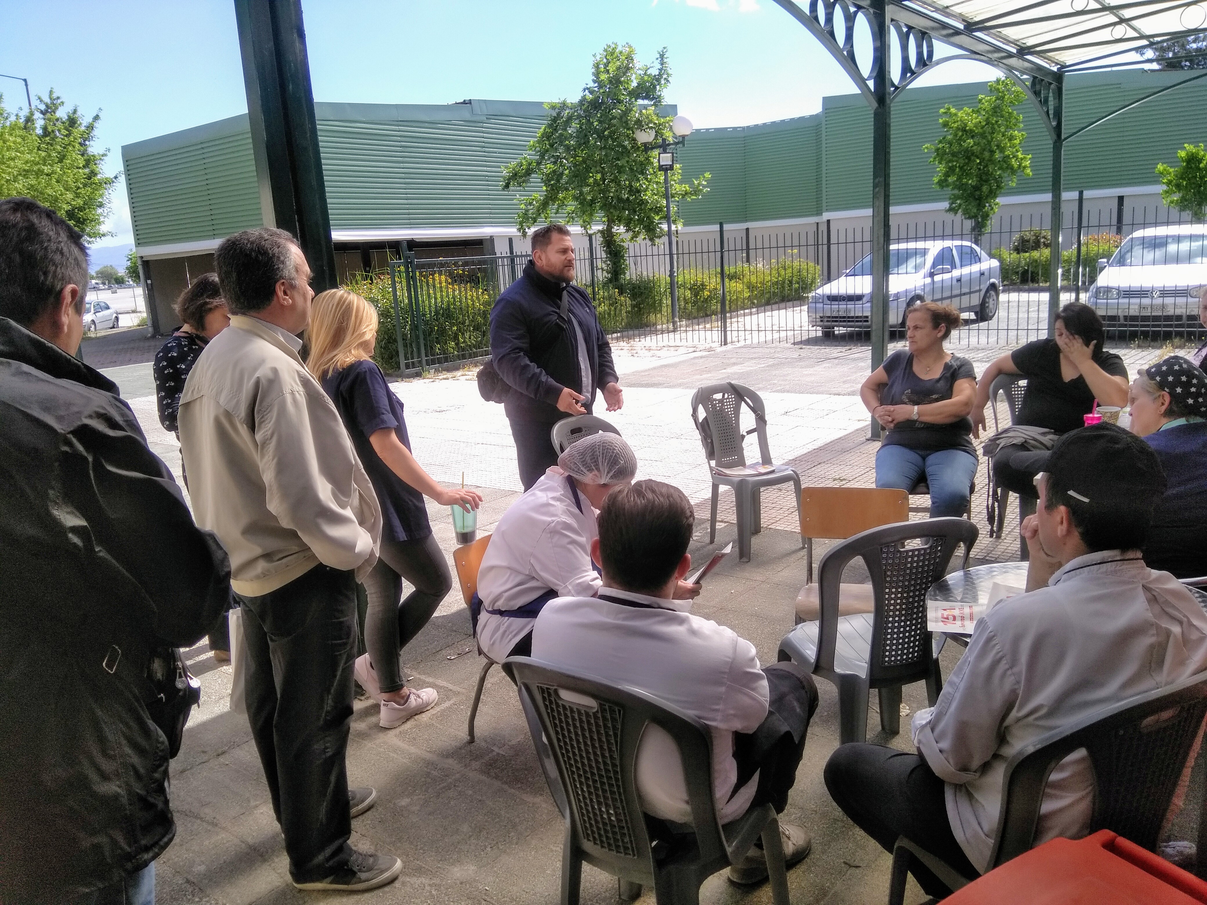 Από τη συζήτηση με τους εργαζομένους αναδείχτηκαν οι σοβαρές ελλείψεις σε υποδομές και προσωπικό. Αξιοσημείωτο είναι ότι η δομή είναι υπεύθυνη για τα γεύματα 26 παιδικών σταθμών και τα συσσίτια απόρων δηλ. συνολικά για 2000 μερίδες ημερησίως περίπου.