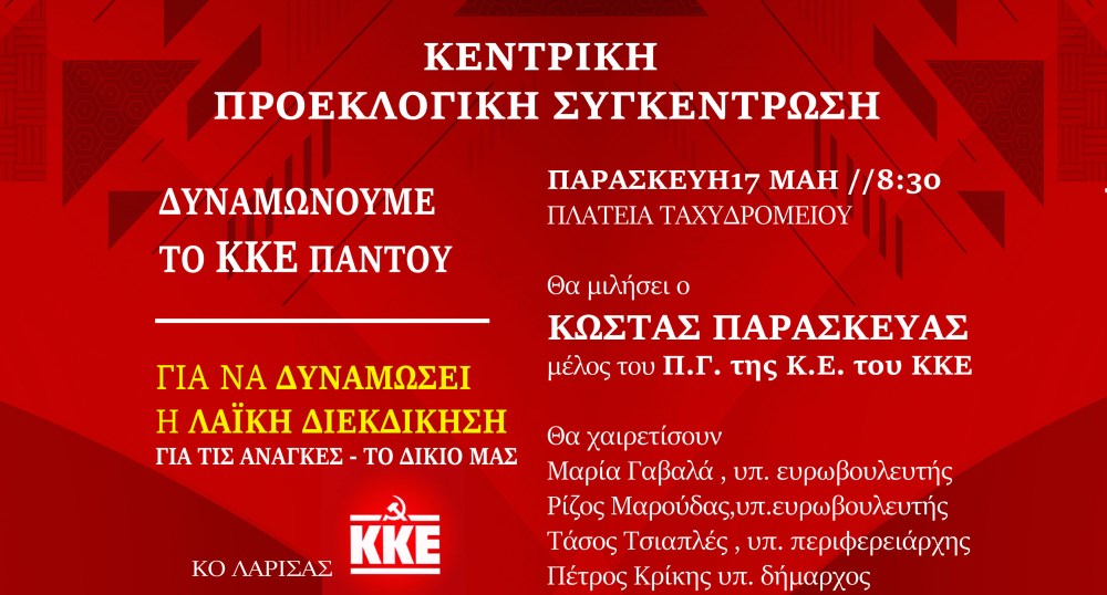 Σε συγκέντρωση του ΚΚΕ την Παρασκευή 17 Μάη, στις 8:30 μμ,