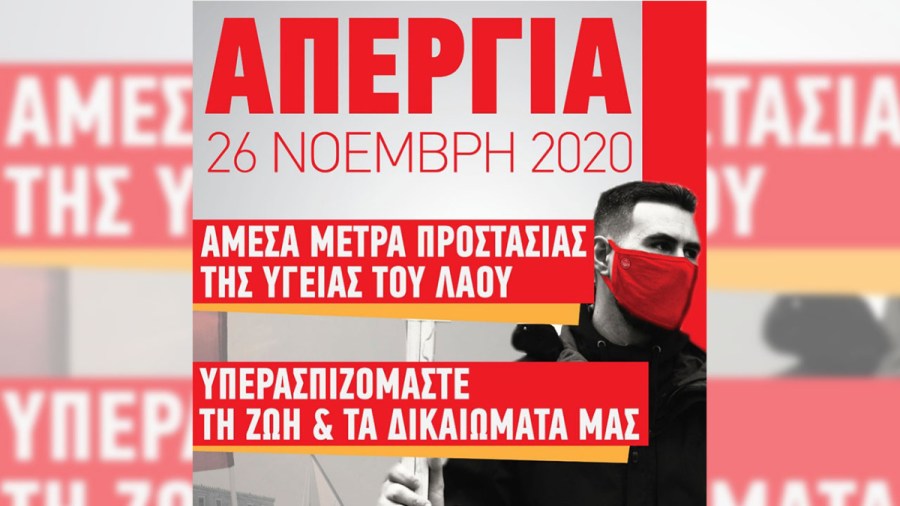 Η πανελλαδική απεργία στις 26 Νοέμβρη 2020, πρέπει να αποτελέσει μια μεγάλη μαζική μαχητική απάντηση στην αντεργατική - αντιλαϊκή επίθεση και βήμα διεκδίκησης αιτημάτων με βάση τις εργατικές και λαϊκές ανάγκες.